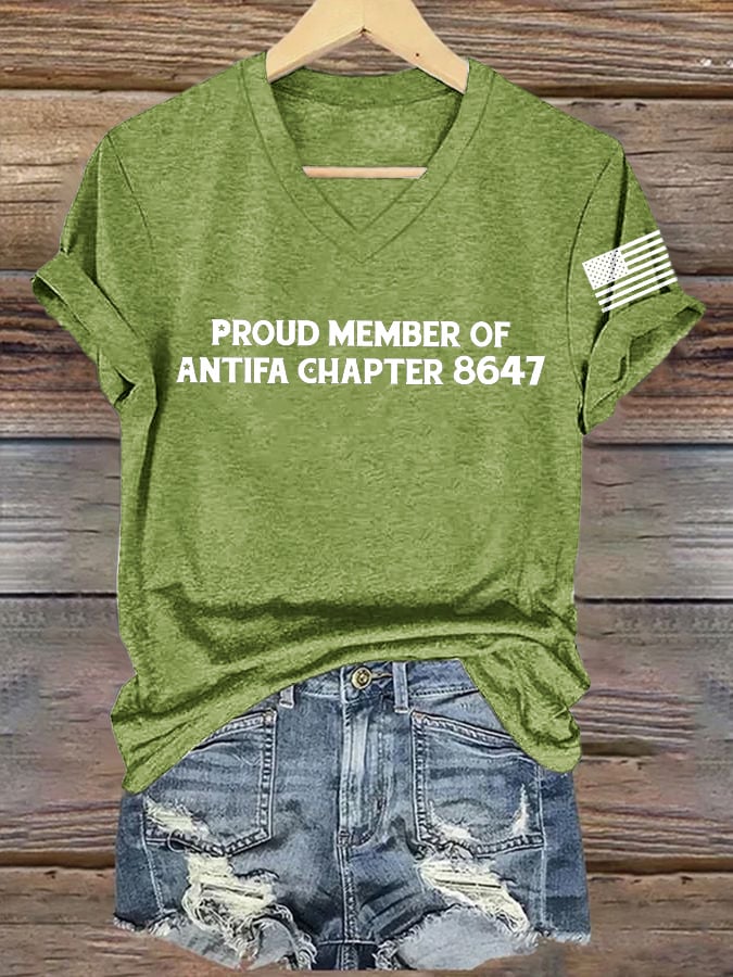 V-Neck Retro Proud Member Of Antifa Chapter 8647 Print T-Shirt