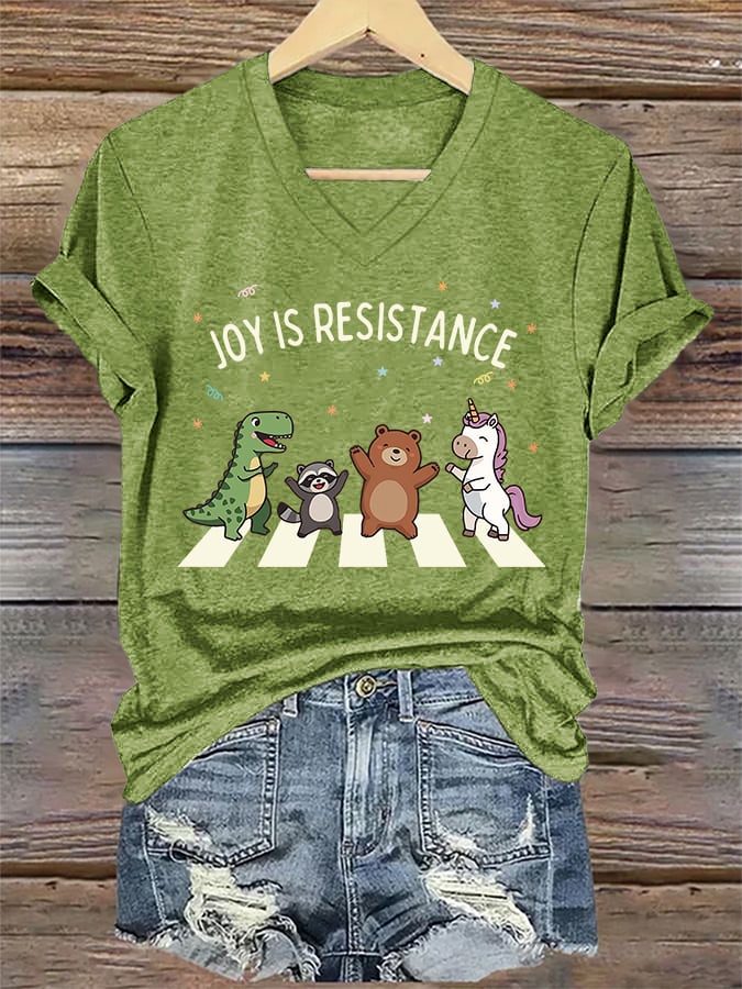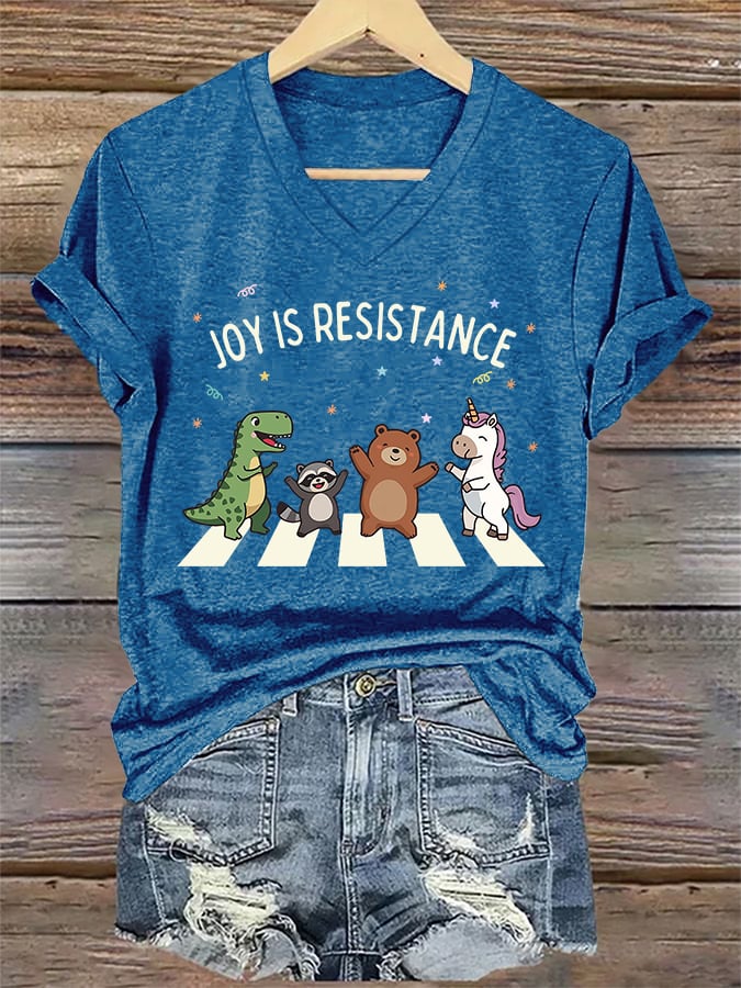 V-Neck Retro Joy Is Resistance Print T-Shirt